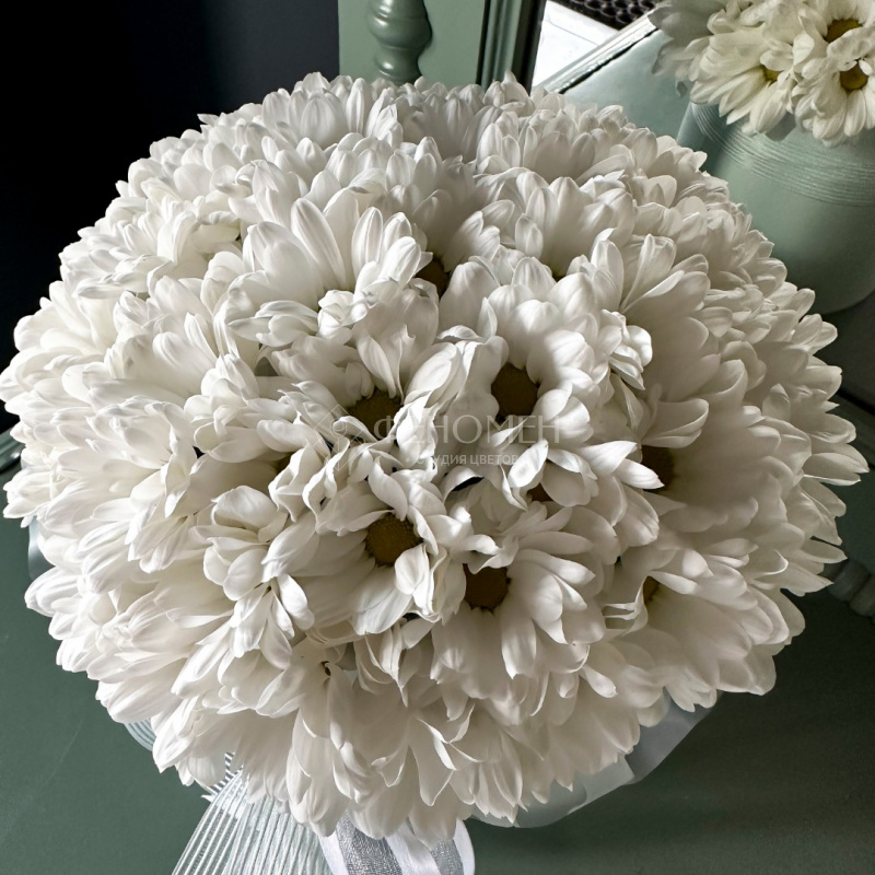 Небольшая композиция с белым хризантемами, похожими на ромашки