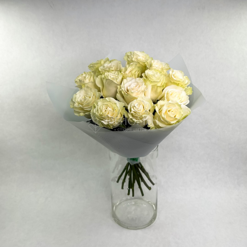 Классический букет из белых роз с лентой